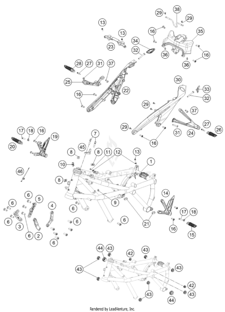 2024 KTM 1290 Super Duke R EVO - Orange - Chassis Pièces OEM | Recherche schéma d'assemblage Recherche de pièces OEM et inspecteur de diagrammes (Microfiche)